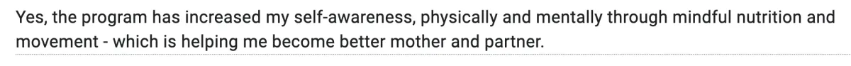 Our girls do not go hungry (unless they’re in an active fat loss phase) and they get to keep their fat loss for life! But more than losing fat, our clients learn that self-care is imperative. It starts with eating right and moving well—all while being grounded in a growth mindset!